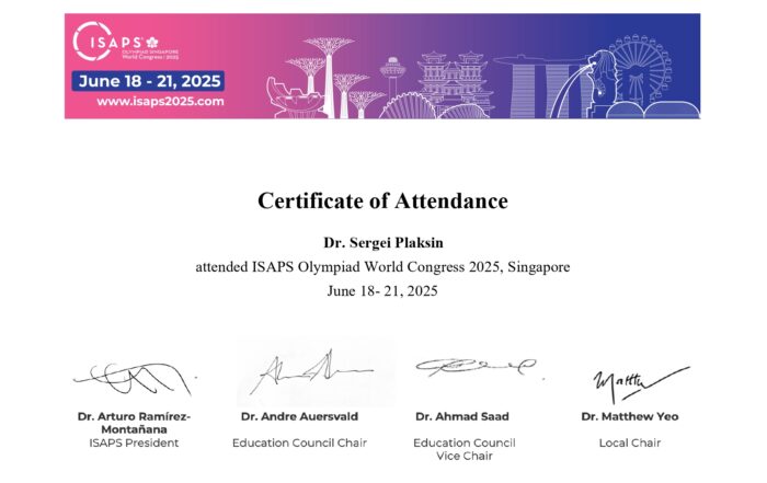 Сергей Александрович Плаксин — участник ISAPS Olympiad World Congress 2025 в Сингапуре